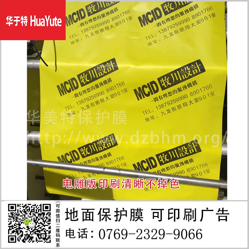 东莞华于特装修材料有限公司,拥有实体厂房,是目前国内为数不多的集设计、后期制作于一体的专为家装工地装修服务的公司。公司拥有丰富的生产经验员工和拥有4条先进的全自动化印刷制作生产线,1天的产能最高可达10万平方米。远销全国各地,是装饰公司的最佳合作伙伴;专门生产订做瓷砖保护膜 地面保护膜、门窗保护膜、装修成品保护膜、门套保护、等装修保护材料。