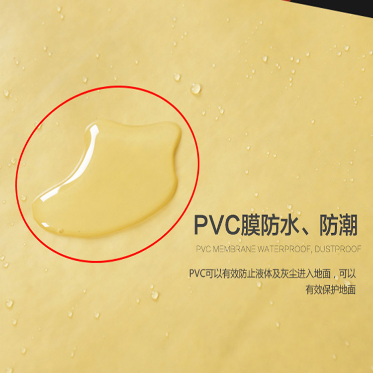 PVC地面保护膜具有五防。防水、防油漆、防潮、防滑、防火(阻燃:烟头没法点燃它)。或许其他保护材料有其他的前面2个功能,但是呢后面三个功能可是PVC这种材质独有具备的。